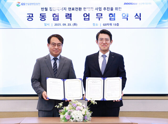 GS반월열병합발전은 24일 두산에너빌리티와 ‘반월 집단에너지 연료전환 현대화 사업 추진을 위한 업무협약(MOU)’을 체결했다고 밝혔다. 이번 협약식은 전날 서울 역삼동 GS타워에서 진행됐으며, GS반월열병합 이정균 대표이사와 두산에너빌리티 김봉준 Plant EPC영업총괄 등 양사 주요 관계자가 참석했다.