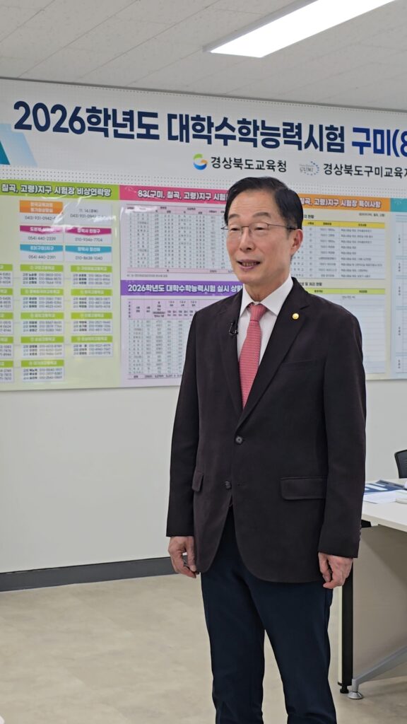 (임종식 경북교육감 )는 “우리 아이들이 오직 실력 발휘에만 집중할 수 있도록 보이지 않는 곳에서 지원 중”이라며 “모든 수험생이 뜻한 바를 이룰 수 있기를 진심으로 기원한다”고 말했다.