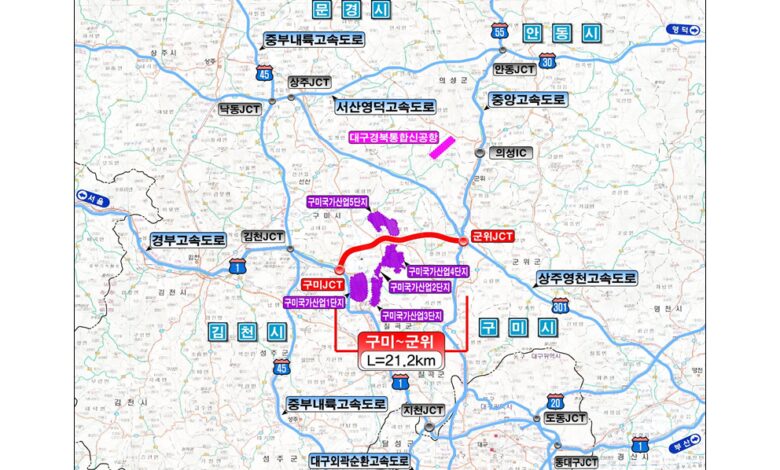 무엇보다 대구·경북 통합신공항과 직접 연결되는 첫 고속도로라는 점이 주목된다. 고속도로가 개통되면 구미 시내 어디서든 신공항까지 약 20분 내 접근이 가능해지며, 구미는 공항을 품은 도시로 한 단계 더 도약하게 된다. 제조와 수출을 기반으로 성장해온 구미에 ‘공항 물류’라는 날개가 더해지는 셈으로, 산업 경쟁력 강화와 물류혁신이 기대된다.