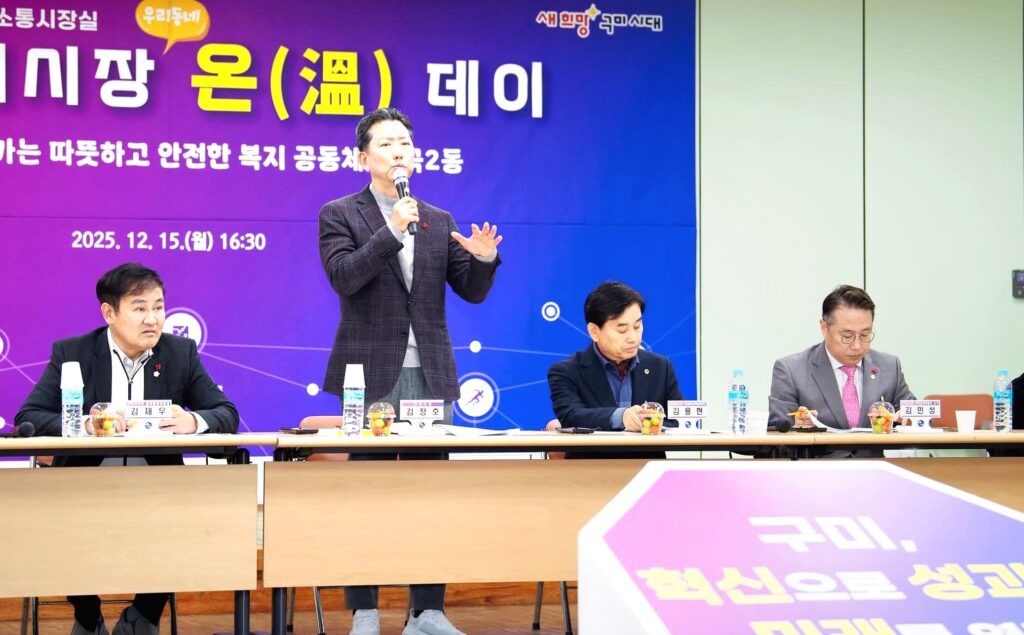 12월 15일, 김장호 구미시장은 ‘온데이 지역구 탐방’ 일정으로 형곡2동을 방문해 시민들과 시청 주요 기관장, 시·도의원, 지역 단체장들과 직접 마주 앉았다. 이날 자리는 단순한 민원 청취를 넘어, 구미시의 중장기 발전 구상이 형곡2동이라는 생활 현장에 어떻게 연결되고 있는지를 확인하는 뜻깊은 시간이었다.