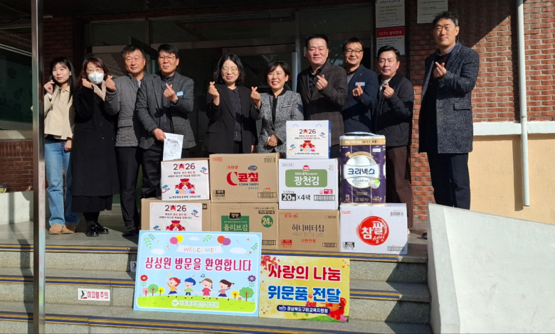 경상북도구미교육지원청(교육장 민병도)은 민족 고유의 명절 설을 맞아 소외되는 이웃 없이 모두가 따뜻한 정을 나누고자 2026. 2. 12.(목) 관내 사회복지법인 삼성원과 사회복지법인 다함께하는길을 방문하여 위문품을 전달했다.
