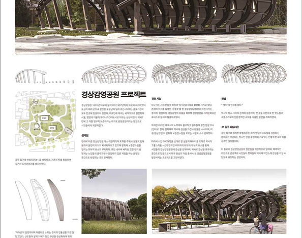 대상작인 ‘경상감영프로젝트’는 경상감영공원을 현대적으로 재해석한 작품으로 전통과 현대를 조화롭게 해석한 건축미가 돋보이며, 작품의 완성도, 영상미에서 높은 평가를 받아 대상의 영광을 안았다.