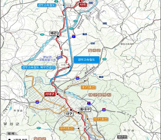 * 정거장 계획 : 구미~사곡(新)~왜관~서대구(新)~대구~동대구~경산